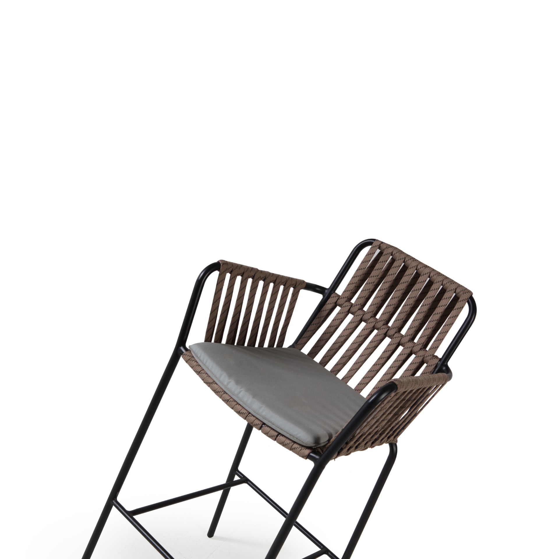 Fly Dış Mekan Bar Sandalyesi, el işçiliği örgü detayları ve modern hatlarıyla dış mekân kullanımı için tasarlanmış şık ve dayanıklı bir bar sandalyesidir. Hava koşullarına dayanıklı rope örgü yapısı, metal güçlendirilmiş gövdesi ve ergonomik oturum formu ile uzun yıllar sorunsuz kullanım sağlar.